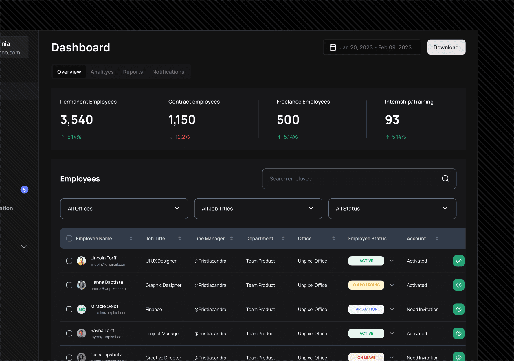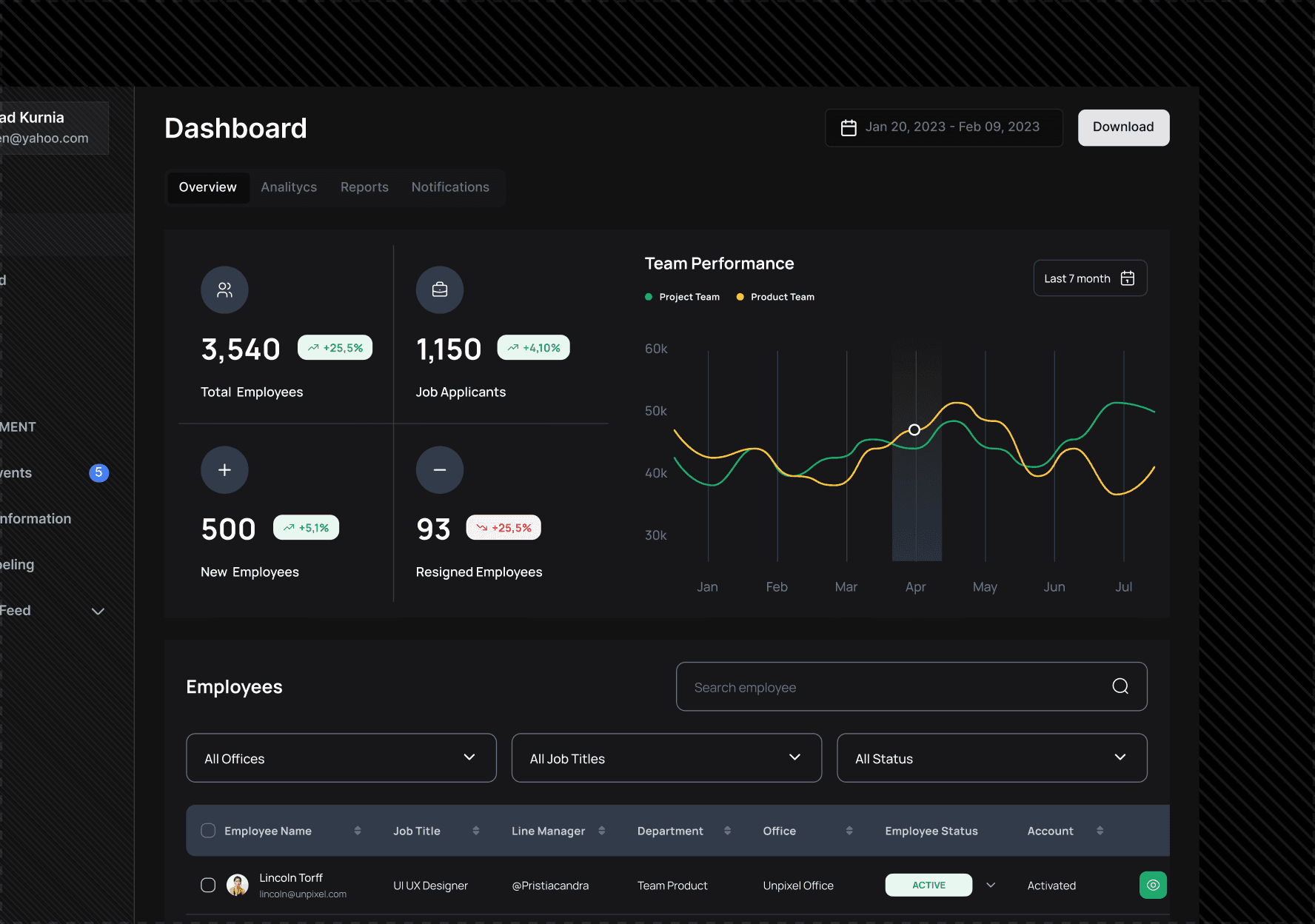 Aggregated data from LinkedIn, GitHub, Dribbble, and more